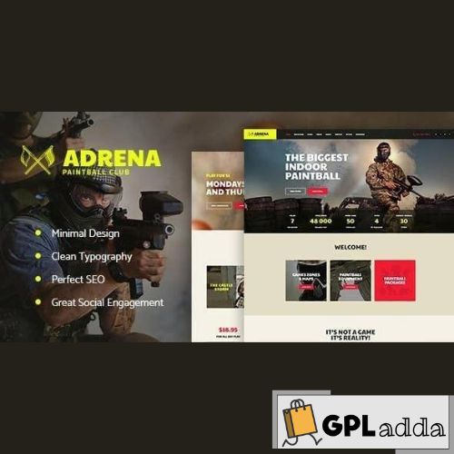 Adrena is a stylish, modern & responsive Paintball Club WordPress Theme . It is designed for Paintball Club, a community. Also works for strikeball company, game, firm, organization. Due to full woocommerce compatibility, you can make an online shop/store of clothing & equipment. Adrena is great for paintball, strikeball, airsoft, laser tag, hardball and other para-military games. You can open WooCommerce online Store and sell sportswear, gear, special equipment like running shoes, accessories, and equipment, player jerseys and t-shirts for everyone: amateur or professional, kids or adults, rookie or veteran. Also, it will fit any sports blog , magazine, marathon runner, healthy lifestyle coach, fitness coach, jogging trainer or sportsmen health store. Paintball Club WordPress Theme plugins Adrena is made compatible with WPBakery (aka Visual Composer , which we think is better than Elementor). Also, it works with Woocommerce, Slider Revolution, Instagram Feed & Essential Grid. Furthermore, to interact with your customers, the theme is equipped with MailChimp & Contact Form 7. Strikeball WordPress Theme features Premade pages: Zones, Pricing, Store, About, Vouchers Advanced Contact & Booking Forms Full Woocommerce store compatibility Beautiful gallery & Instagram feed.