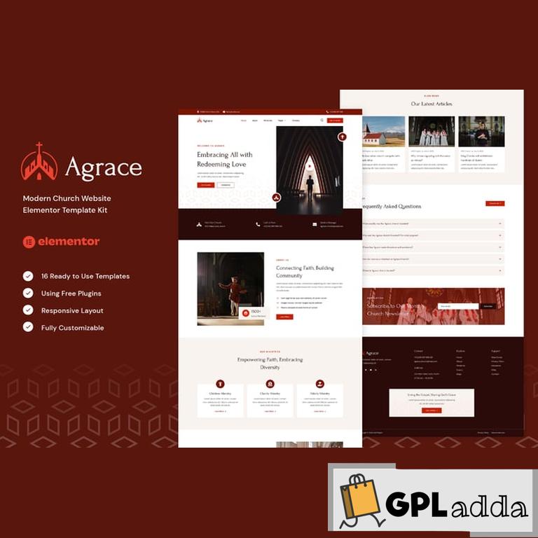 Agrace – Modern Church Website Elementor Template Kit