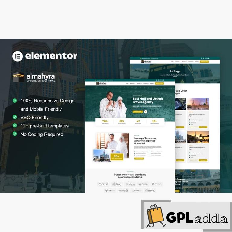 Almahyra is an Elementor Pro Template Kit for Umrah & Hajj Tour Travel service website. This template layout has modern layout with unique design style and suitable for any business related to Umrah & Hajj Tour Travel. You can easily build website for company that provide Umrah & Hajj Tour Travel. Just drag and drop, no coding required.