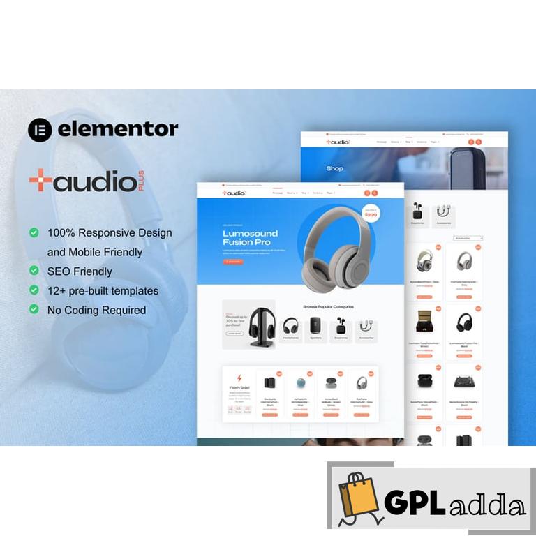 AudioPlus is Elementor Template Kit for audio store website. This template kit will help you to create any website related to audio store. You can also use this elementor template kit for any website store using WooCommerce + Elementor, even you can easily sell audio store, audio online shop, headphones eCommerce, speaker shop & headsets, gadget & electronics store or any electronic product with this elementor template kit. It has 12+ pre-built templates with clean design and modern style.