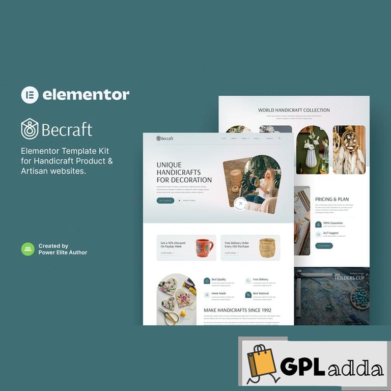Becraft is a modern and clean Elementor Template Kit that is perfect for those who want to create a professional-looking website for Handicraft Product, Crafting, Artisan, Home Decoration, Accessories, and any other handmade products. This kit has a beautiful and unique design with a 100% responsive layout, retina-ready, and very easy to customize because using Elementor so you don’t need a single line of coding!