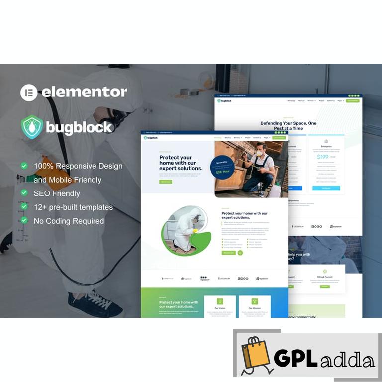 BugBlock is an Elementor Template Kit for pest control service website. This template kit will help you to create any website related to pest control service website such as pest control, mosquito control, rodent control, bed bug control, and any services related to pest control. It has 12+ pre-built templates with clean design and modern style.