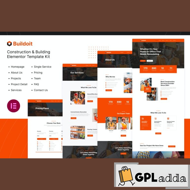 Buildoit is a fully-featured Elementor Template Kit dedicated to construction, architecture, building, real estate, industrial, manufacturing, mechanical, etc.