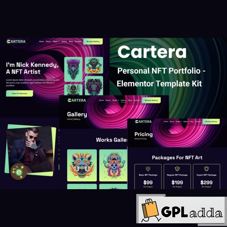 Cartera – Personal NFT Portfolio Elementor Template Kitis designed to create user-friendly websites for clients with pre-made templates. It is responsive and fits various displays. No coding is required for website creation.