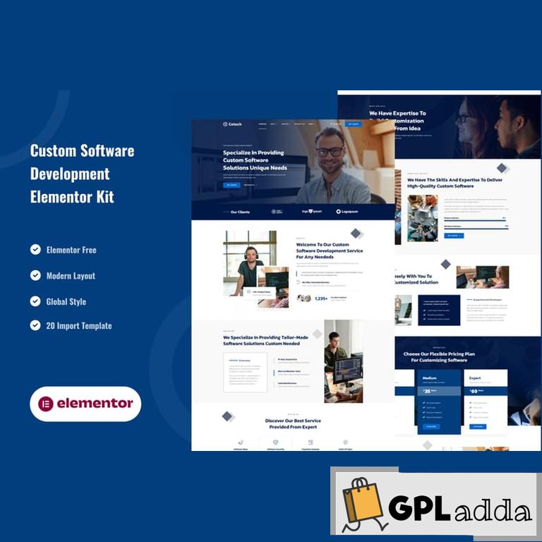 Cetech – Custom Software Development Services Elementor Template Kit is a collection of layouts for the Elementor page builder WordPress plugin, designed for use with Elementor Free Version for a clean Design. It works with most themes and is optimized for use with the free Hello Elementor theme.