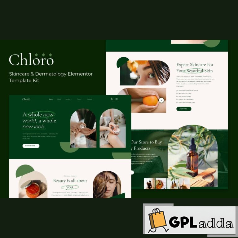 Chloro – Skincare & Dermatology Elementor Template Kitis an Elementor Template Kit for quickly and easily creating websites for your cosmetic skincare brand or dermatology business using the Elementor Page Builder plugin for WordPress. This kit has been optimized for use with the free Hello Elementor theme but may be used with most themes that support Elementor.