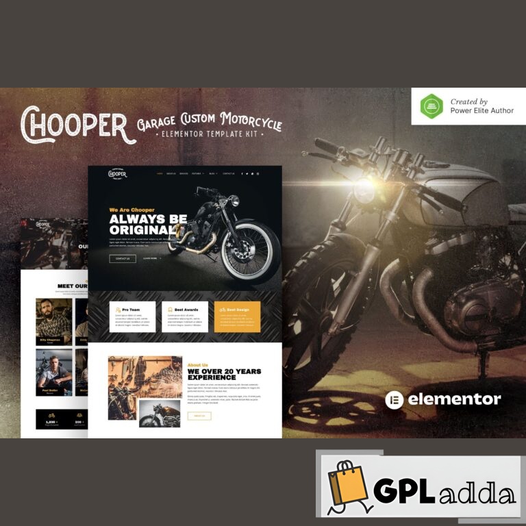 Chooper is a modern and clean Elementor Template Kit that is perfect for those who want to create a professional-looking WordPress-based website for a Custom Motorcycle Workshop, Garage, Motorbikes Shop, bike services, or any other automotive business. This template has a professional design with a 100% responsive layout, retina-ready, and very easy to customize because using Elementor so you don’t need a single line of coding!