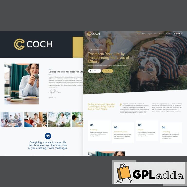 Coch is a clean, modern, and creative portfolio design Template Kit designed for coaches, personal teaching, courses, speakers, trainers, psychologists, mentors, or businesses looking to showcase their work and services in a professional way.