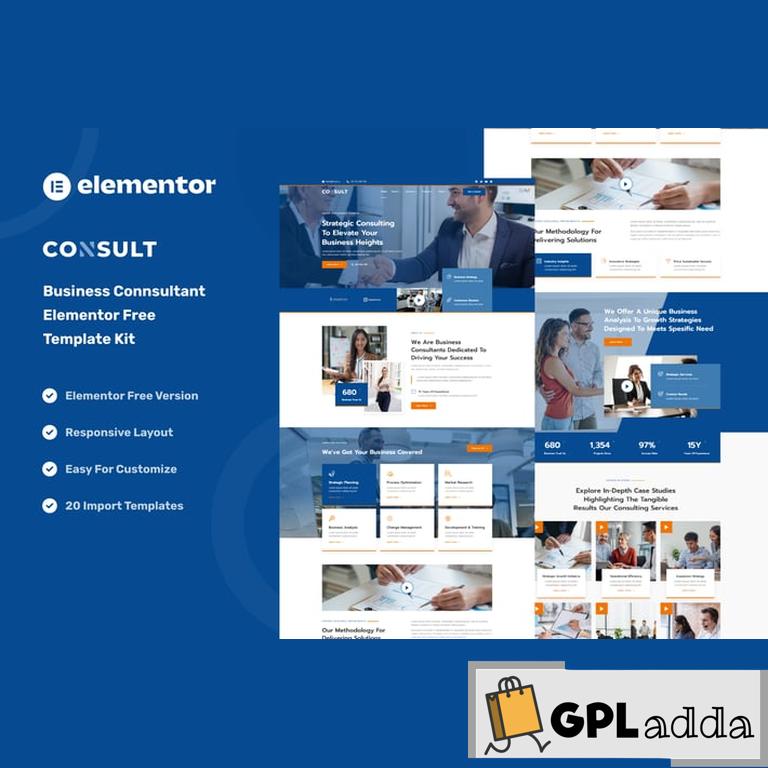 Consult – Business Consulting & Strategy Elementor Template Kit is a collection of layouts for the Elementor page builder WordPress plugin, designed for use with Elementor Free Version for a clean Design. It works with most themes and is optimized for use with the free Hello Elementor theme.