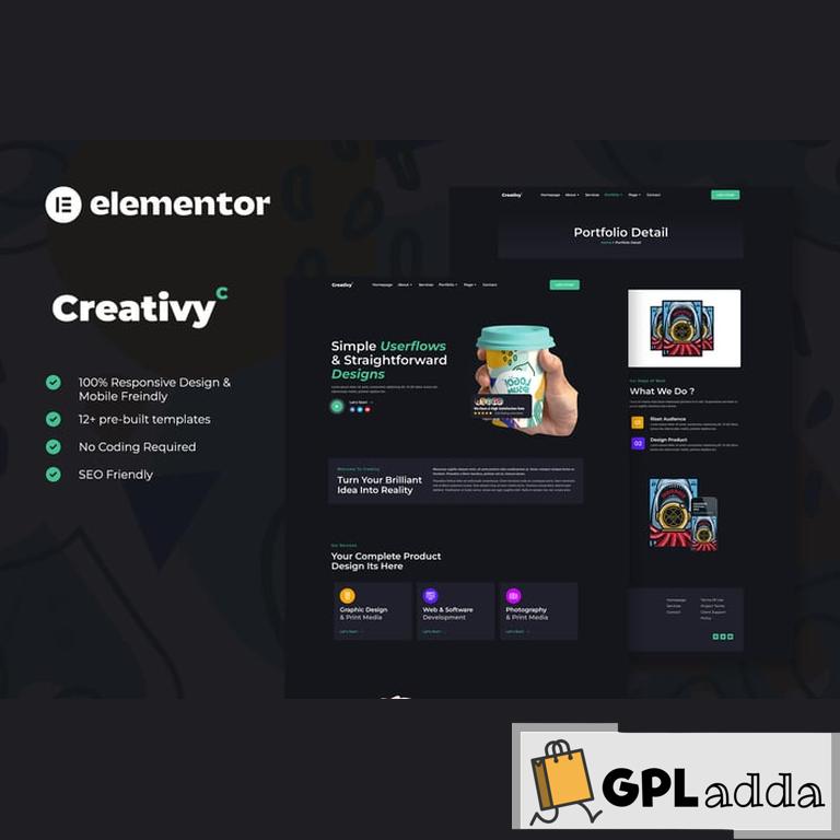 Creativy – Creative Agency & Portfolio is an Elementor Template Kit for quickly and easily creating websites for your business using the Elementor Page Builder plugin for WordPress. This template features a professional design, a 100% responsive layout, is retina-ready, and is incredibly simple to edit because it uses Elementor, which eliminates the need for any coding at all.