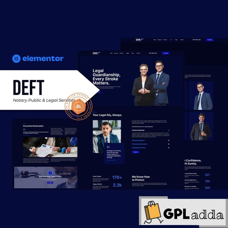 Deft is an Elementor Template Kit specially designed for Notary Public & Legal Services websites built in WordPress! This kit has a modern and unique design with a 100% fully responsive layout, easy installation, and sure very easy to customize because using Elementor so you don’t need a single line of coding!