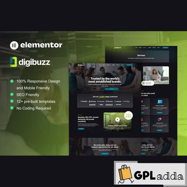 DigiBuzz is elementor template kit for digital agency website. It has 12+ pre-built templates with professional design and modern style. You can also use this creative template kit for any kind of businesses or services such as design agency, digital marketing, website development, social marketing, SEO service, graphic design, and many others.