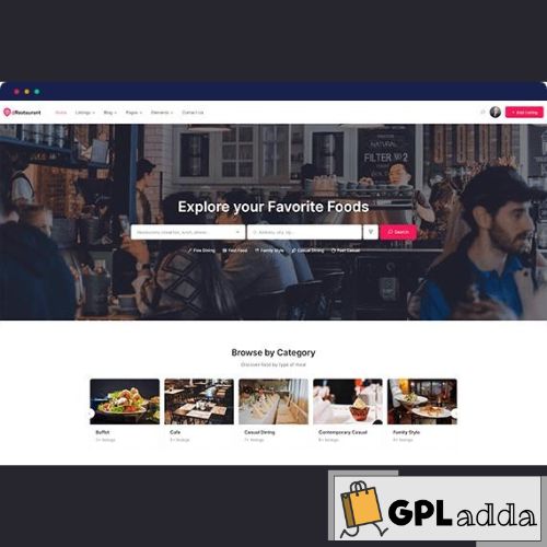 dRestaurant theme is presented with everything you need to build a directory website for restaurants. This theme includes multi directory capabilities, a modern user dashboard, a built-in SEO system, an advanced search option, a directory builder, custom fields, and translation support. A number of homepages and intuitive design throughout the theme will hitch up your directory business to a whole new ball game. More importantly, it supports the Elementor page builder with an army of free widgets. It strings along with necessary premium extensions that will allow you to add numerous.