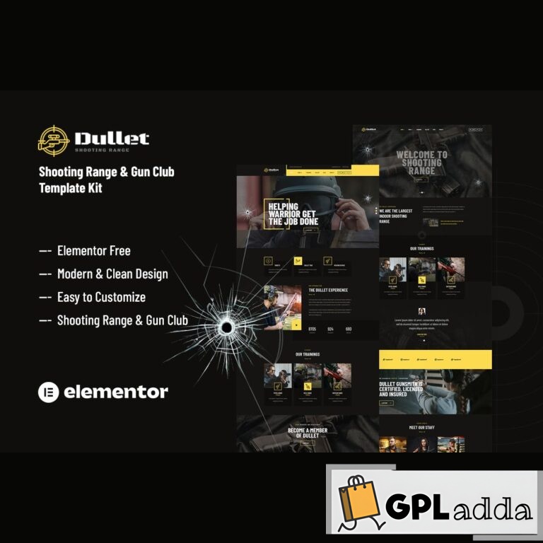 Dullet is a dark modern Template Kit designed for Shooting Ranges, Gun Clubs, Shooting Schools, Hunting Clubs, Gun Classes, and firearm training websites. The kit requires no coding skills and can be easily customized using the Elementor page builder. It is optimized for use with the free Hello Elementor theme but can also work with most themes that support Elementor.