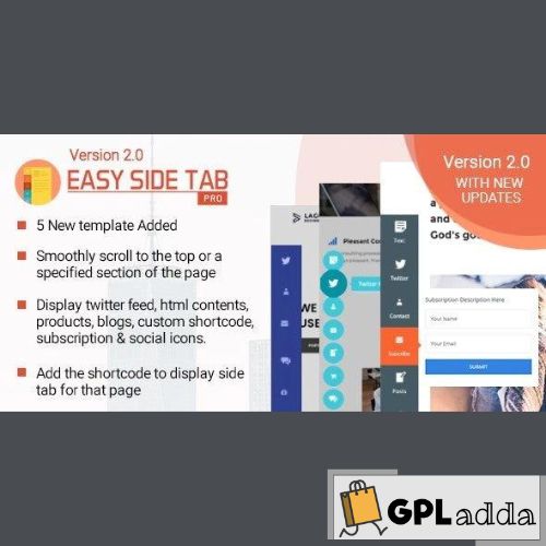 Easy Side Tab Pro – is a Call To Action Floating Tabs plugin for WordPress which allows you to create any number of quick side tabs and stick them to any of the vertical or horizontal edge position. When the tab is clicked the popup associated to that tab pops out. The plugin has a very easy and user-friendly backend interface to create your tabs and assign different functions to each of the tabs. There are many functionalities to choose from for each tab like twitter feed, social share icons, recent posts, woo-commerce product, custom shortcode, wp editor content, subscription form, internal page link, custom external page link.
