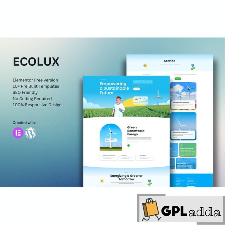 Ecolux – Green Renewable Energy Elementor Template Kit is a collection of layouts for the Elementor page builder WordPress plugin, designed for use with Elementor Free Version for a clean Design. It works with most themes and is optimized for use with the free Hello Elementor theme.