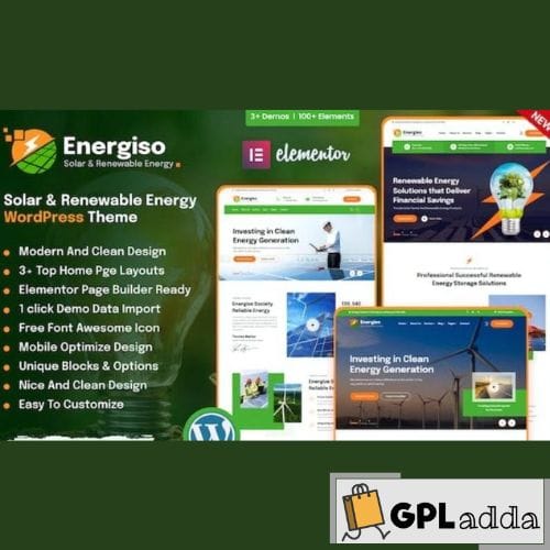 Energiso is a stylish WordPress Theme with modern industrial design that is an ideal option for a renewable energy supplier, solar panel, solar panel maintenance company, solar panel manufacturer, recycling company, organic and biological services for a variety of eco-friendly business types.