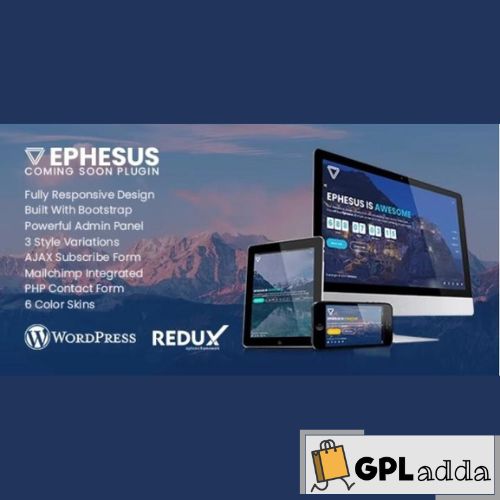 Ephesus is a creative and professional coming soon WordPress Plugin built with Bootstrap framework. It includes Ajax MailChimp subscription, Contact Form and Google Maps.