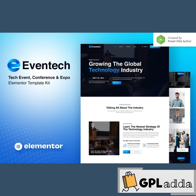 Eventech is a modern Elementor Template Kit designed for Tech Event, Tech Conference & Meetup, Expo, Text Competition, Education, Technology, or Event Organizer websites. The kit features a Creative and Unique design with a 100% responsive layout, retina-ready, and easy customization.