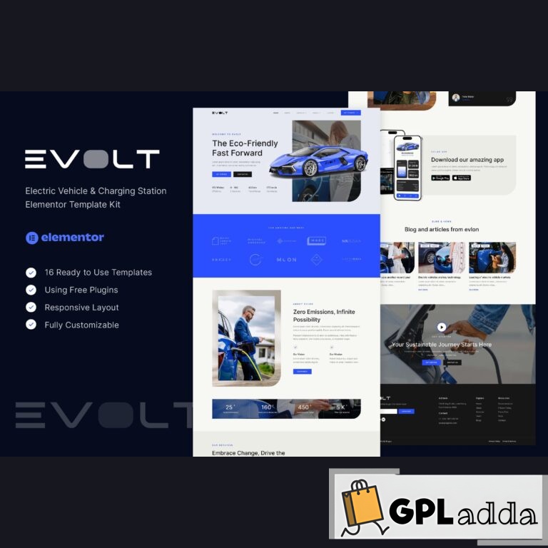 Evolt – Electric Vehicle & Charging Station Elementor Template Kit(NOT a WordPress Theme) created especially for electric vehicles, biotherm, charging station, green storage energy, clean energy, technology website, solar energy etc. Evolt has a simple, modern and clean design with 100% responsive layout, and very easy to customize and can be used by anyone without having to understand coding.This template kit includes stunning carefully crafted 12 Pages and 16 Stunning Templates, you can build your professional-looking website just a click away.