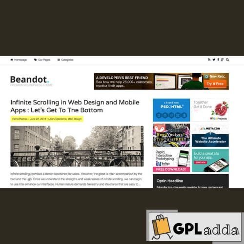FameThemes Beandot WordPress Theme A clean, simple, minimalistic blog theme which concentrates on displaying your awesome posts. With a beautiful newsletter form, Beandot is a great starter theme for any project.