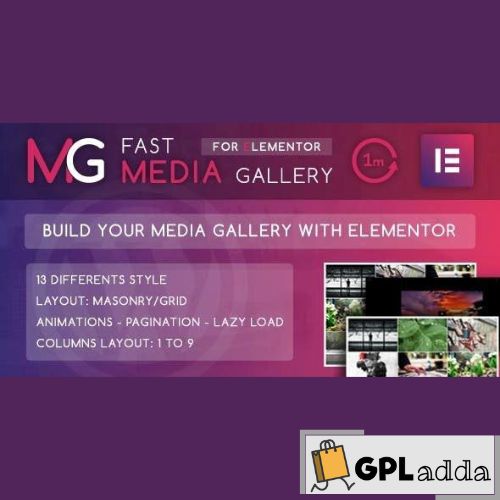 Welcome to Fast Media Gallery for Elementor . With this awesome plugin, you can build your media gallery using Elementor. You can choose between 13 different styles with grid or masonry layout. You can choose your responsive version with default responsive, custom responsive or fluid responsive. Required Elementor installed if you want to use this plugin. Because this is an addon for Elementor Features FAST MEDIA GALLERY : 13 Different style Layout: Masonry/Grid Columns Layout: 1 to 9 Pagination with 2 different style Lazy Load effect Animations Types of Element: image, video (youtube, Vimeo or local video), audio (SoundCloud, local), iframe, an image with custom URL Custom Thumbnail size. You can choose between default value, thumb, medium, large, full for Thumbnails image and for lightbox image Multiple Galleries on the same page Custom space between images Custom color for each gallery (Main color with opacity and Secondary color) 3 Responsive type: Responsive / Custom Responsive / Fluid Translation Ready (include .po/.mo files) Addon For Elementor.