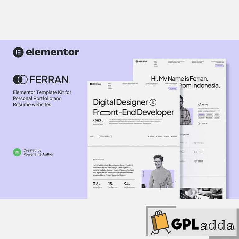 Ferran is a modern and clean Elementor Template Kit for create a stunning personal portfolio or online resume that showcases your creativity and expertise. Perfect for web developers, UI/UX designers, and freelancers.