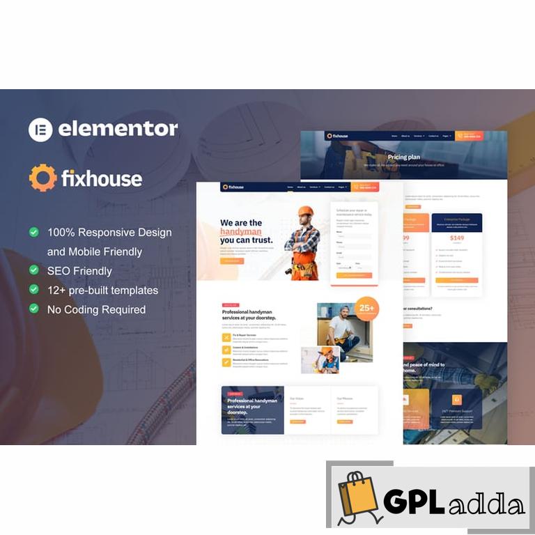 FixHouse is Elementor Template Kit for Handyman & Repair Service website. This template kit will help you to create any website related to Handyman & Repair Service website. You can easily offer service such as Handyman, Repair Service, Plumber, Electrician, Carpenter, or any home improvement and maintenance services. It has 12+ pre-built templates with clean design and modern style.