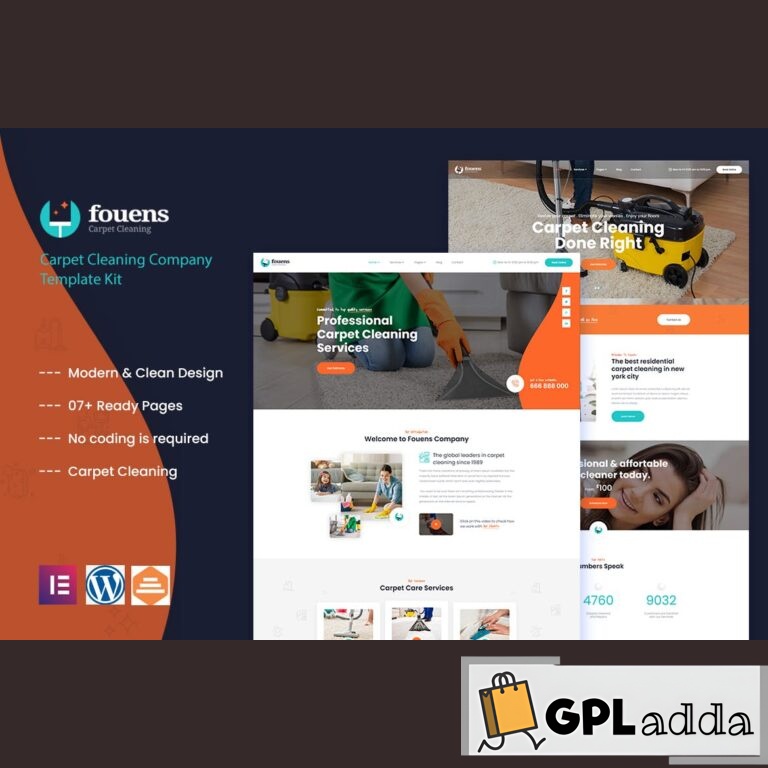 FouensCleaning Company Template Kit can be used as carpet cleaning website as well as for any other purpose. Feel free to create your own website with this finished template. This is not a WordPress theme. Template Kits contain page content for Elementor page builder. This fully responsive kit has been optimized for use with the free Hello Elementor theme but may be used with most themes that support Elementor.
