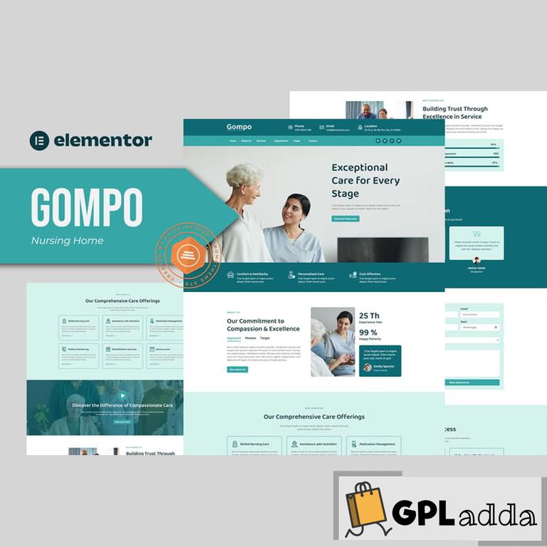 Gompo is an Elementor Template Kit tailored for retirement services. The template kit comes with an ideal selection of templates for Home Nursing, Senior Care Services, Elderly Home Care, Retirement Home, Healthcare, Medical, Nursing, Hospital, Clinic, or any other medical or health-related business. This kit has a modern and unique design with a 100% fully responsive layout, easy installation, and sure very easy to customize because using Elementor so you don’t need a single line of coding!
