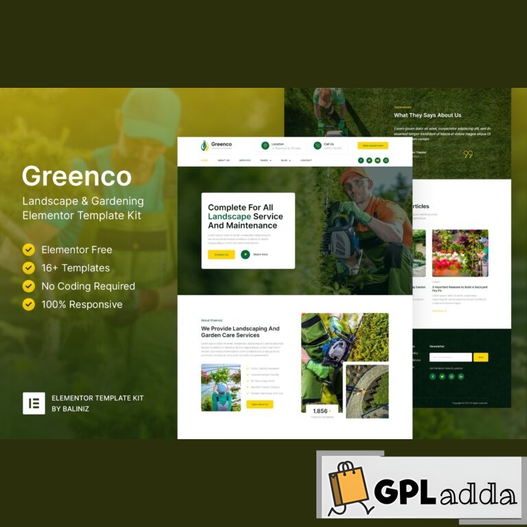 Greenco is a modern Elementor Template Kit designed for Gardeners, Landscape Architects, Florists, Groundskeeping, Agriculture, Lawn Services, or related businesses. It offers a professional and functional website layout to showcase your services and projects.
