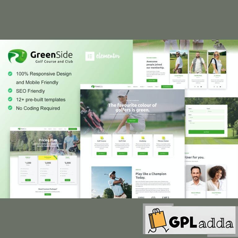 GreenSide is a clean, modern, and professional elementor template kits designed for golf websites. Featuring 12+ pre-built templates with a clean and modern style, this template kit is suitable for any website related to golf. It includes blog layout design for sharing golf-related content. Ideal for golf clubs, golf academies, golf courses, or any other sports club website.