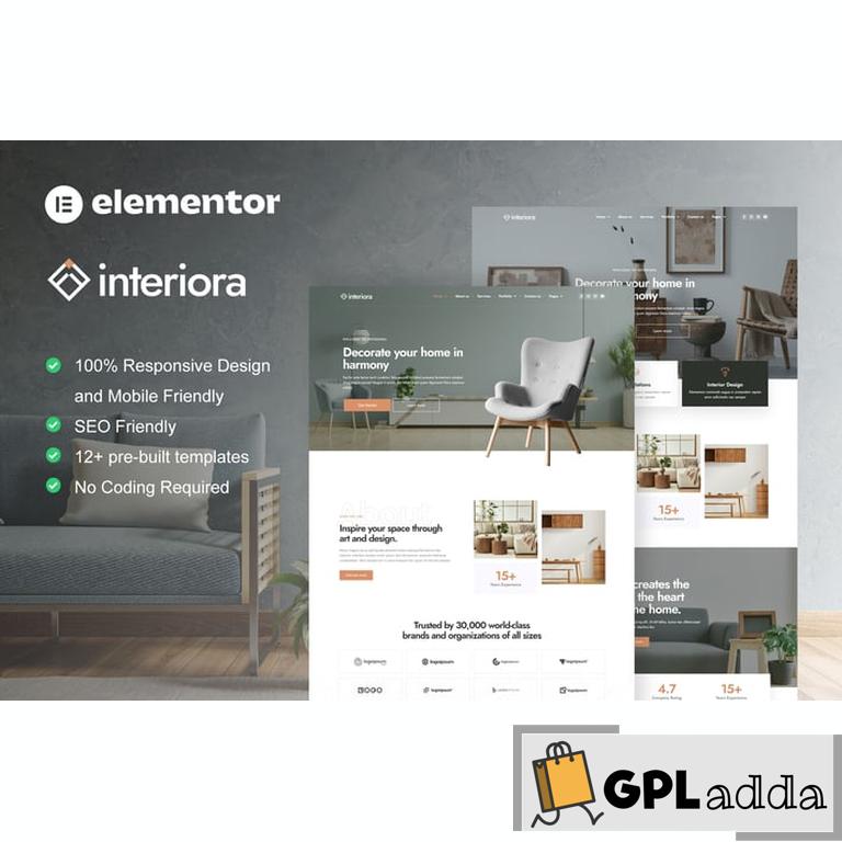 Interiora is elementor template kit for architecture & interior design service. This template kit is perfect for interior designer, architecture, real estate, and even furniture website. It has 12+ pre-built templates with simple design and modern style. You can easily make beautiful website to show your interior design project with this elementor template kit.