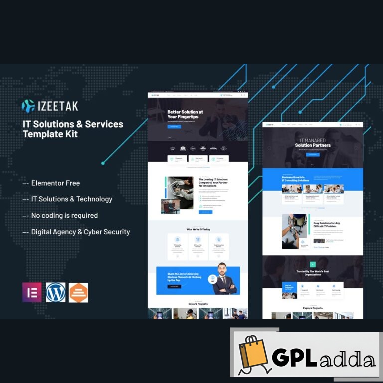 Version 1.0.0 – WordPress 5.x testedIzeetak Template Kit is a responsive and powerful solution for various purposes such as Agency, Business, Consulting, Creative, Cyber Security, Development, Digital Agency, Hosting, IT Services, IT Solutions, Marketing, Software, Startups, Tech, and Technology. Created with Elementor, this kit does not require any coding skills to use or configure templates. This is not a WordPress theme but contains page content for the Elementor page builder.
