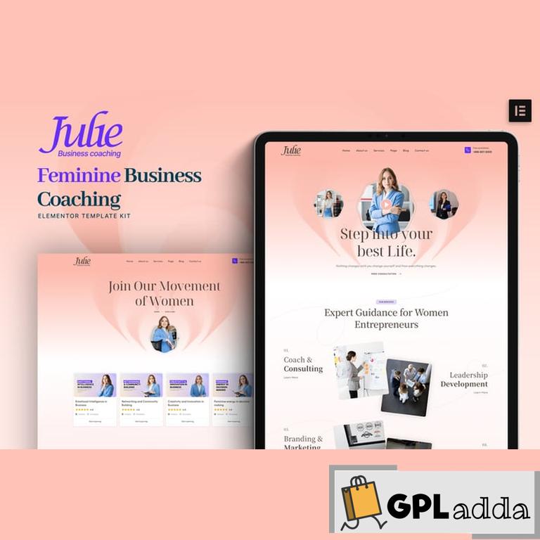Julie – Feminine Business Coaching Elementor Template Kit is created especially for building Empowering women, Feminine leadership, Business coaching for women or any type of business that wants to publish their services in a professional way. Julie has a simple, modern, and clean design with a 100% responsive layout, and it is very easy to customize, making it accessible to anyone without needing to understand coding.