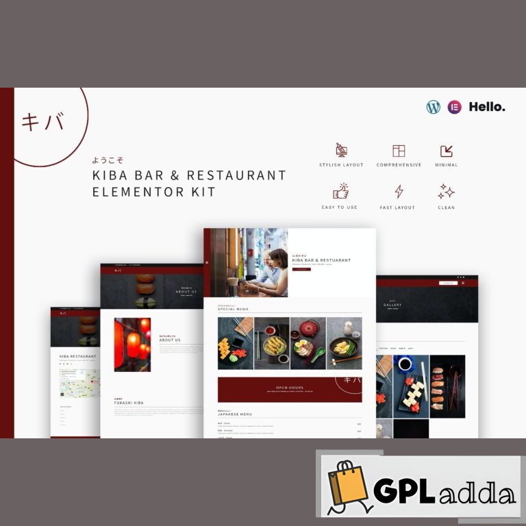 KIBA is Minimal Restaurant kit which mixes Japan traditional style, designed with a unique approach to UI and UX. Compatible with Elementor and Elementor Pro, the kit is lightweight, fast, modern, and clean, powered by the Hello Theme from Elementor.