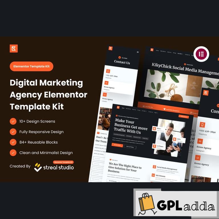 Krono Elementor template kit is a template dedicated to marketing agencies and we create nuanced designs with bright colors that give an enthusiastic emotional effect like marketing agents in creating attractive advertisements or promotions. Make your marketing agency website look vibrant with the website visuals that we have created!