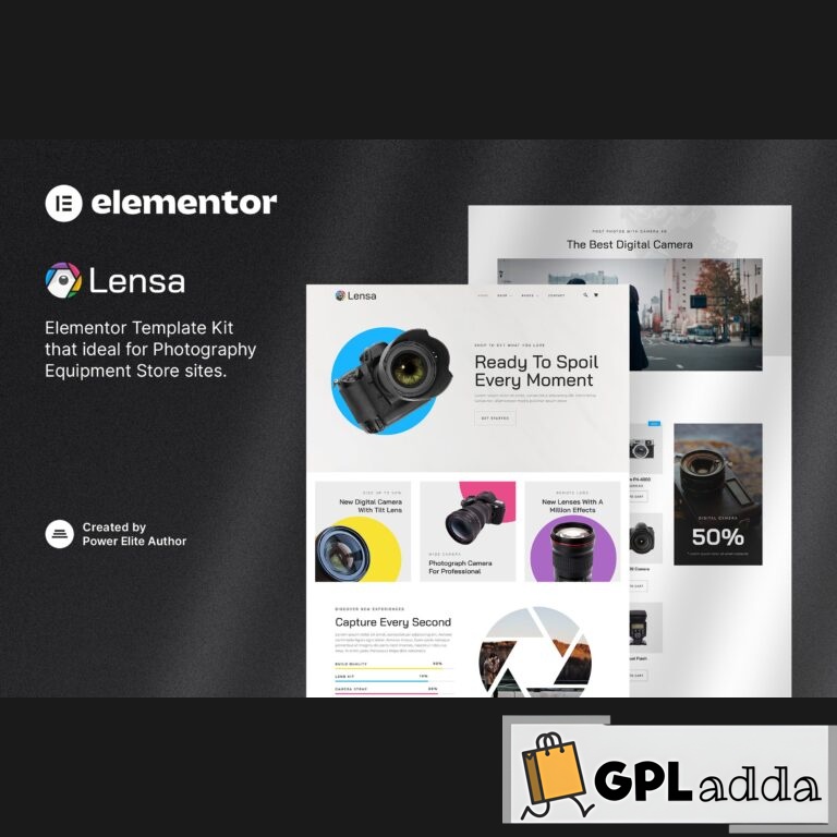 Lensa is a modern and clean Elementor Template Kit built especially for Photography Equipment Store including Digital Cameras, Lenses, Video Cameras, Tripods, and also great for any other electronics store. This kit is compatible with WooCommerce, so you can create a functional online shop and it is very easy to customize.