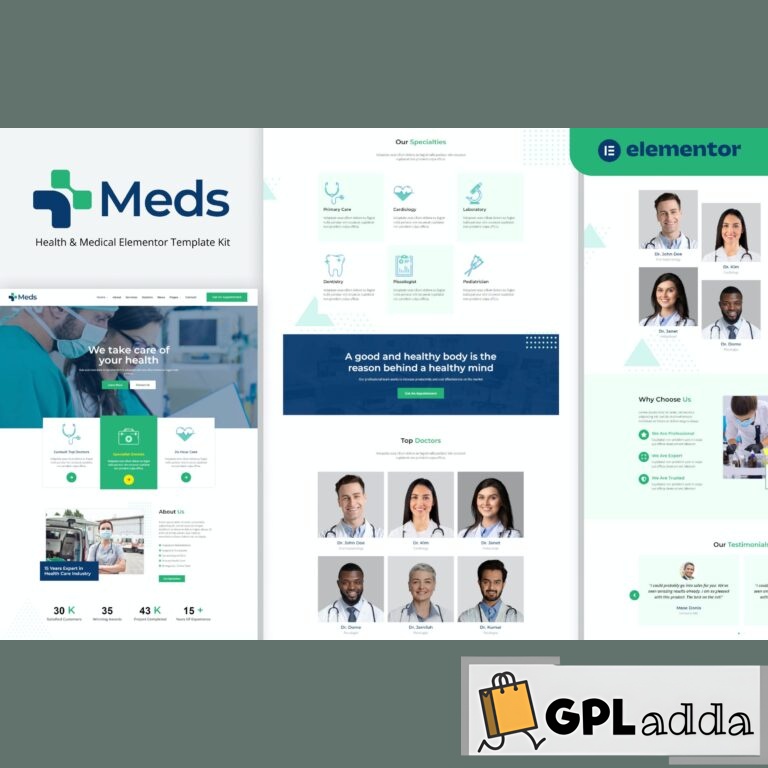 Meds is a versatile Elementor Template Kit designed for doctors, clinics, medical and health care businesses. The template is highly customizable and fully responsive across various screen sizes.