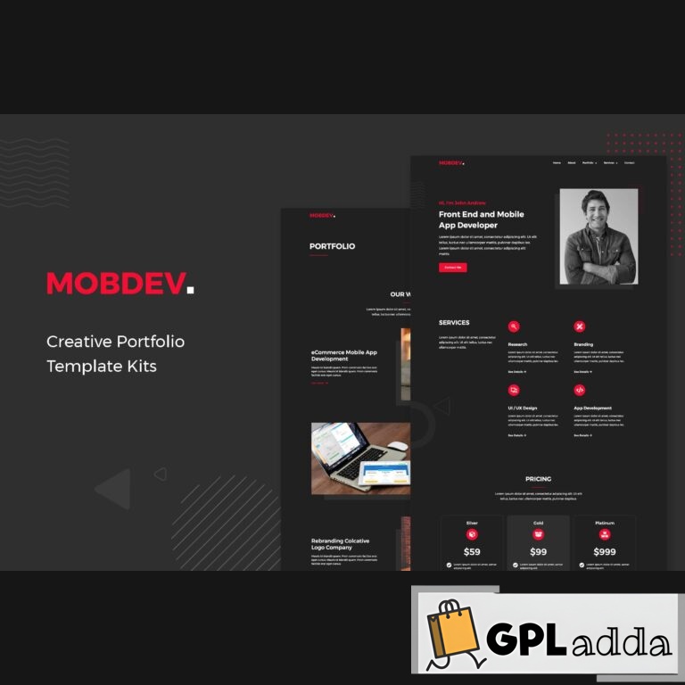 Mobdev is a creative portfolio template kit designed for showcasing a personal portfolio. It includes 10 different pages for your portfolio website.