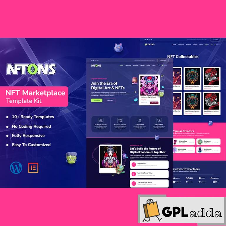 Nftons – NFT Elementor Template Kit is a digital collectible that includes a set of unique, premade templates created using the Elementor page builder. All pages showcase a distinctive style and provide a flexible platform for easily building beautiful websites. By owning the Nftons – NFT Elementor Template Kit, you not only gain access to high-quality design templates, but you also own a one-of-a-kind piece of digital artwork that is verified on the blockchain. Its combination of professional design and cutting-edge technology makes it a one-of-a-kind and helpful kit for anyone wishing to establish a distinct online presence.