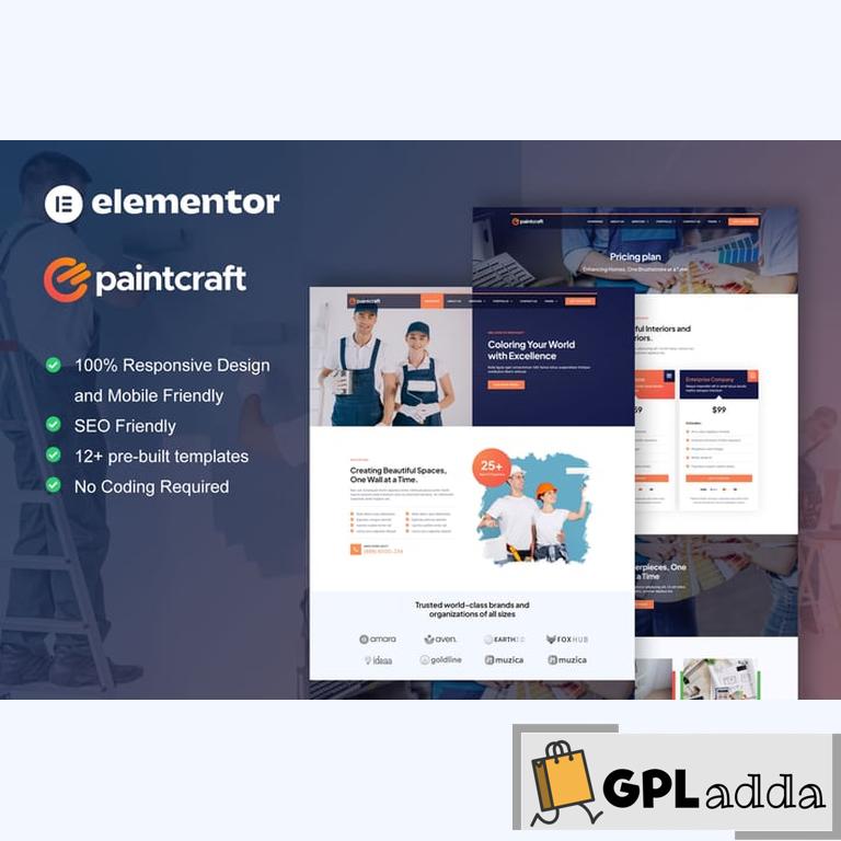 PaintCraft is an Elementor Template Kit for Painting & Wallpapering Service website. This template has modern, clean and professional layout design. Suitable for any business related to painting service & wallpapering. You can easily build any website related to painting service such as home painting website, interior painting, furniture painting, exterior painting, object painting etc. Just drag and drop, no coding required.