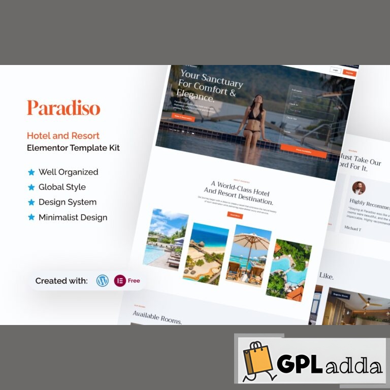 Paradiso is an Elementor Template Kit designed specifically for the Hotel and Resort industry. Built using the powerful combination of Elementor and WordPress, this template provides users with unparalleled ease of customization, allowing them to create stunning websites without the need for coding expertise. With its minimalist design and fully responsive layout, Paradiso ensures that your website will look flawless on any device and browser. Whether you are managing a luxury resort, a boutique hotel, or a vacation rental property, Paradiso is the perfect choice for showcasing your services.