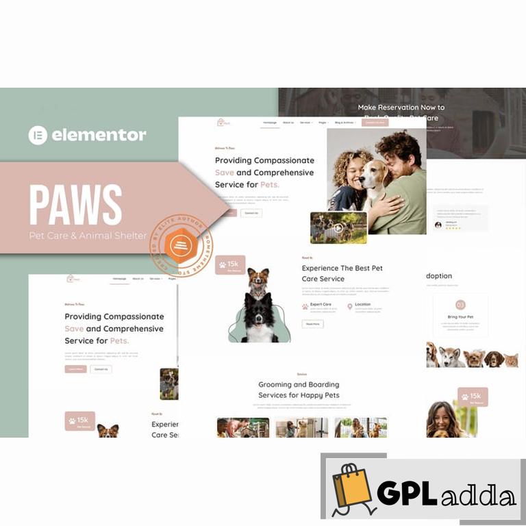 Paws – Pet Care and Animal Shelter Elementor Template Kit
