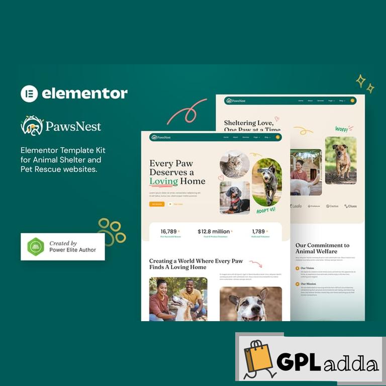 PawsNest – Animal Shelter & Pet Rescue Elementor Template Kit