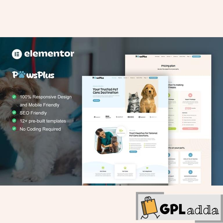 PawsPlus is an Elementor Pro Template Kit for Pet Care & Veterinary website. This template kit is designed for pet care website, including pet related services susch as pet daycare, pet salon, pet centers, veterinary, pet stores, pet hospital, veterinary clinics, etc. It has 12+ pre-built templates, so you can easily make cool website to show your professional pet care services with this elementor template kit.