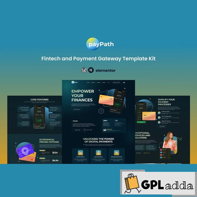 PayPath is an Elementor Template Kit designed for payment gateway providers, e-commerce platforms or fintech services. This is not a WordPress theme. Template Kits contain page content for Elementor page builder. This kit has been optimized for use with the free Hello Elementor theme but may be used with most themes that support Elementor.