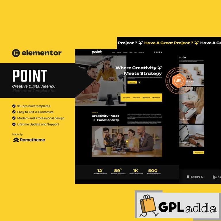 Point is an Elementor Template Kit specially designed for Creative Digital Agency websites! The template kit comes with an ideal selection of templates for advertising, agency, creative, creative agency, design, freelancer, marketing agency, multipurpose agency, portfolio, startup business website service. This kit has a modern and unique design with a 100% fully responsive layout, easy installation, and sure very easy to customize because using Elementor so you don’t need a single line of coding! Save your time.