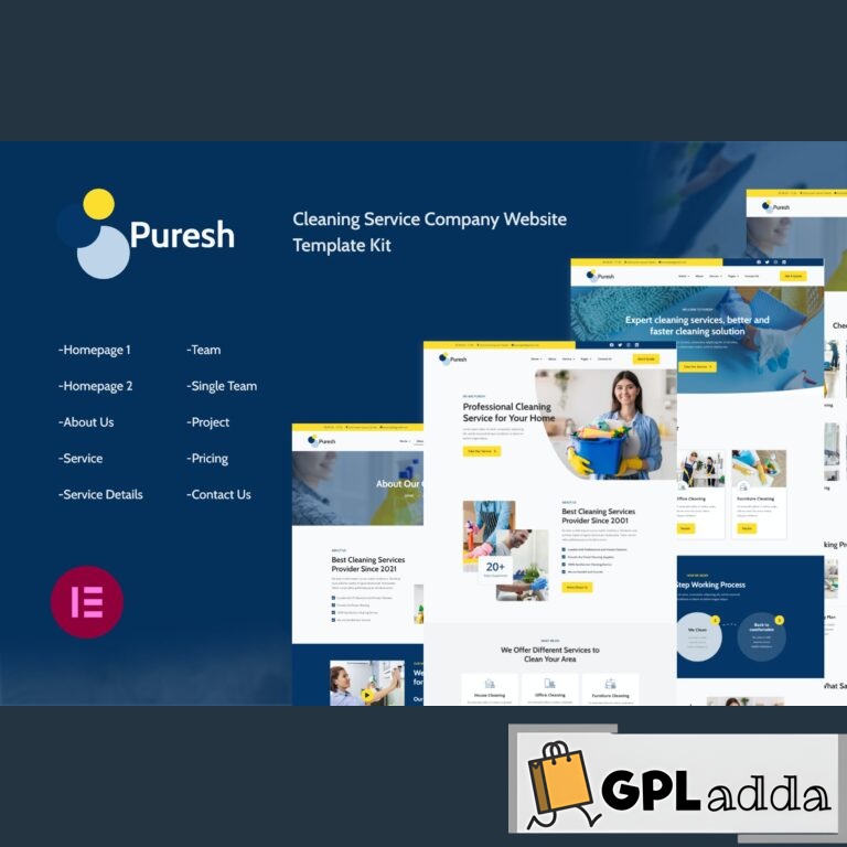 Puresh is an Elementor Template Kit created especially for Cleaning Service companies like House Cleaning, Apartment Cleaners, Cleaning companies, Industry Cleaning, Office Cleaning, Housemaid Solutions, and other related businesses.
