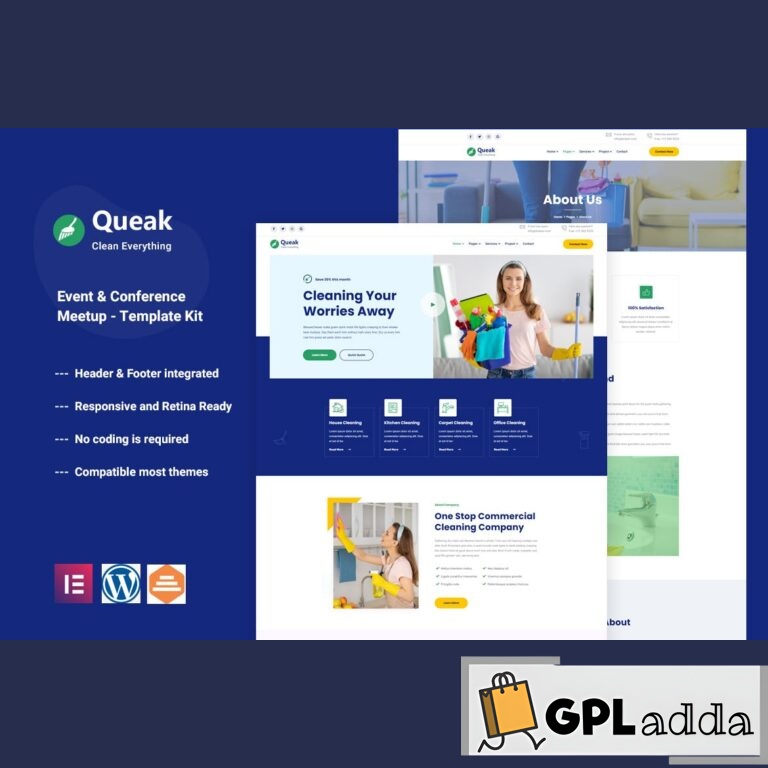 Queakis an Elementor Template Kit created especially for Cleaning Service companies to quickly and easily create a website for your business using the Elementor Page Builder plugin for WordPress. This kit has been optimized for use with the free Hello Elementor theme but may be used with most themes that support Elementor. This template is easily customizable, fully responsive, and supports all modern browsers and devices.